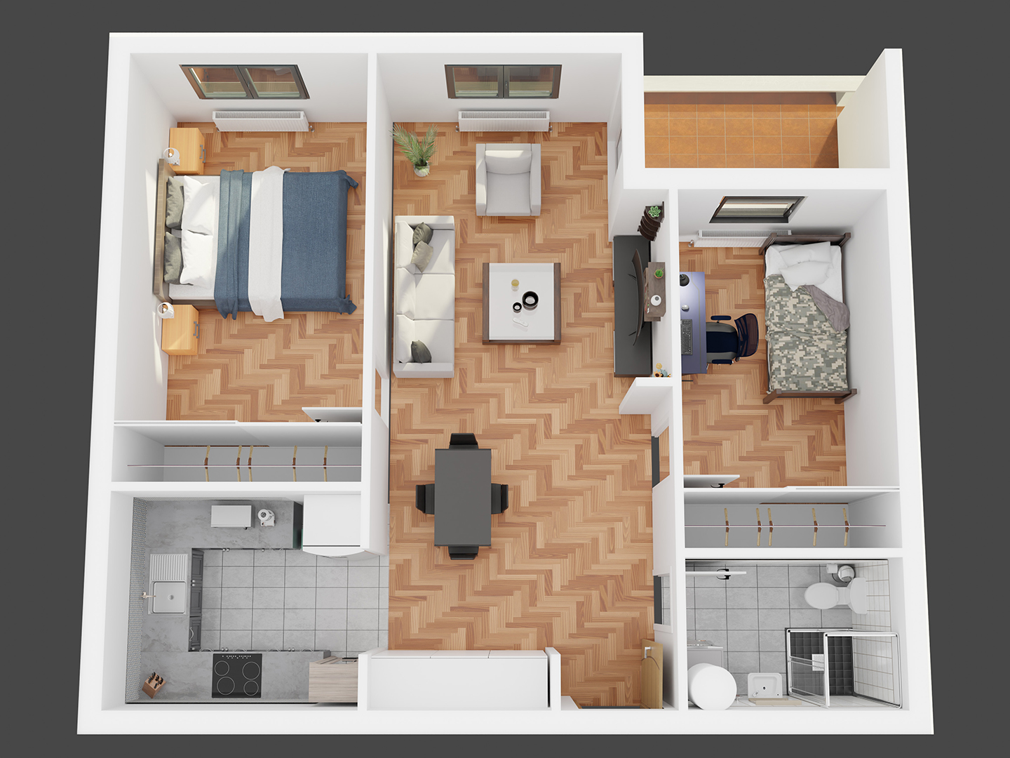 Best for bigger projects above 21 floorplan renders in 4k quality with photorealistic lighting, furniture included, plus 2 additional interior angles per render.
